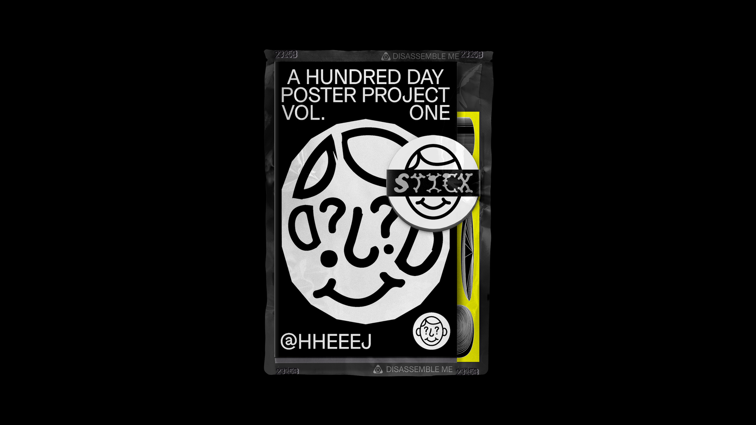 In 2016 I completed a 100 day poster project. The goal was to challenge and better understand my creative thinking by making posters everyday. In 2019, I created a book using notes from the initial process. For the main motif, I created a smiley logo based on a self portrait from one of the posters I had done. The driving inspiration was this idea of disassembling existing notions and exploring new boundaries. With this in mind, I broke the smiley logo apart and repurposed it in various ways for the packaging identity. The disassembled smiley was used in creating the cover, an experimental typeface, other smiley faces and illustrative layout designs.